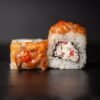 Lašiša, tep. sūris, agurkas, temp.traškučiai, teriyaki padažas, sezamas.