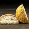 Tepamas sūris, tempura vištiena, agurkas, teriyaki padažas, svogūnų traškučiai.