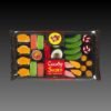 Tepamas sūris, kalmaras tempuroje, svogūno laiškas, agurkas, ikrai, spaisi padažas.